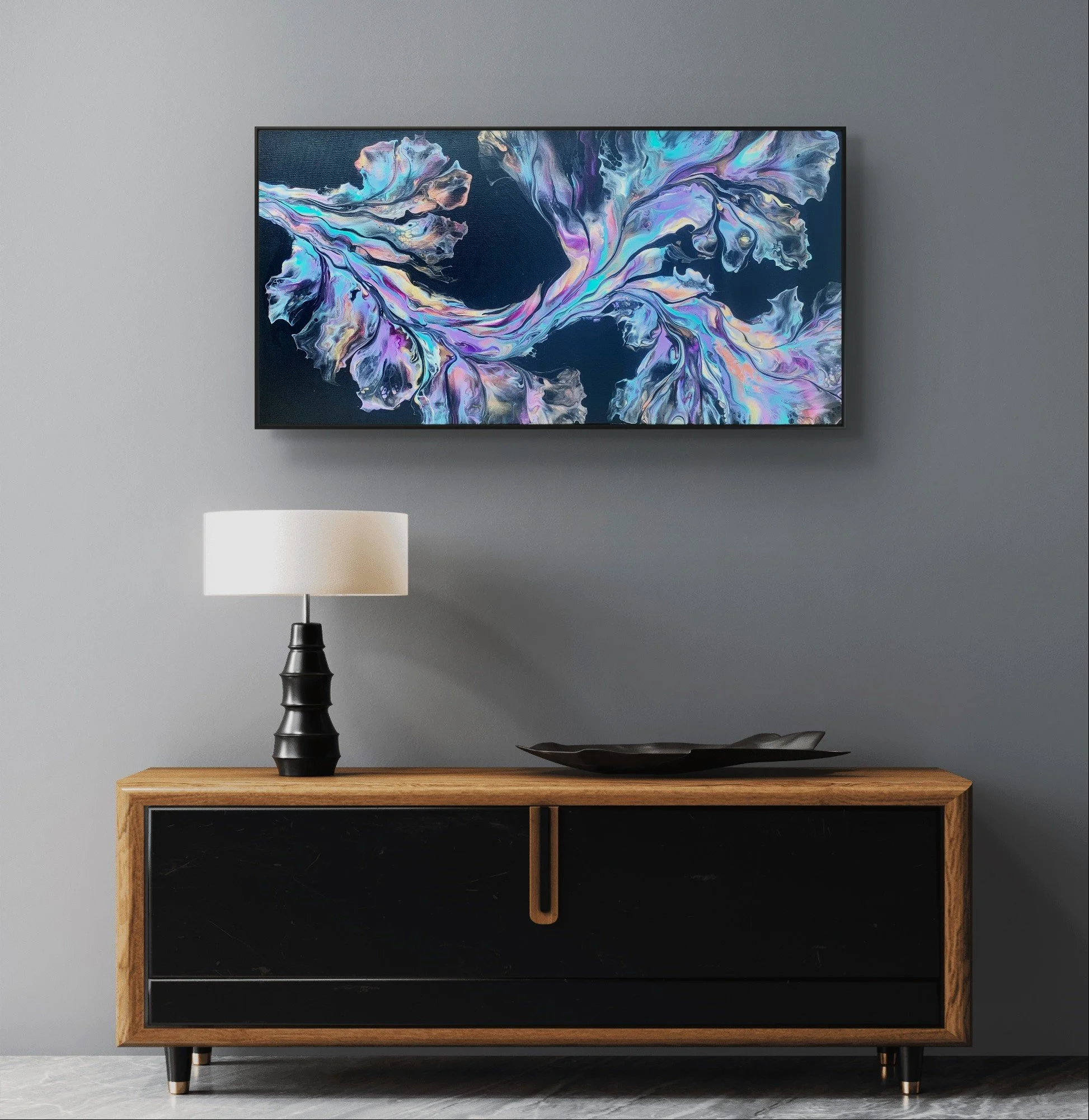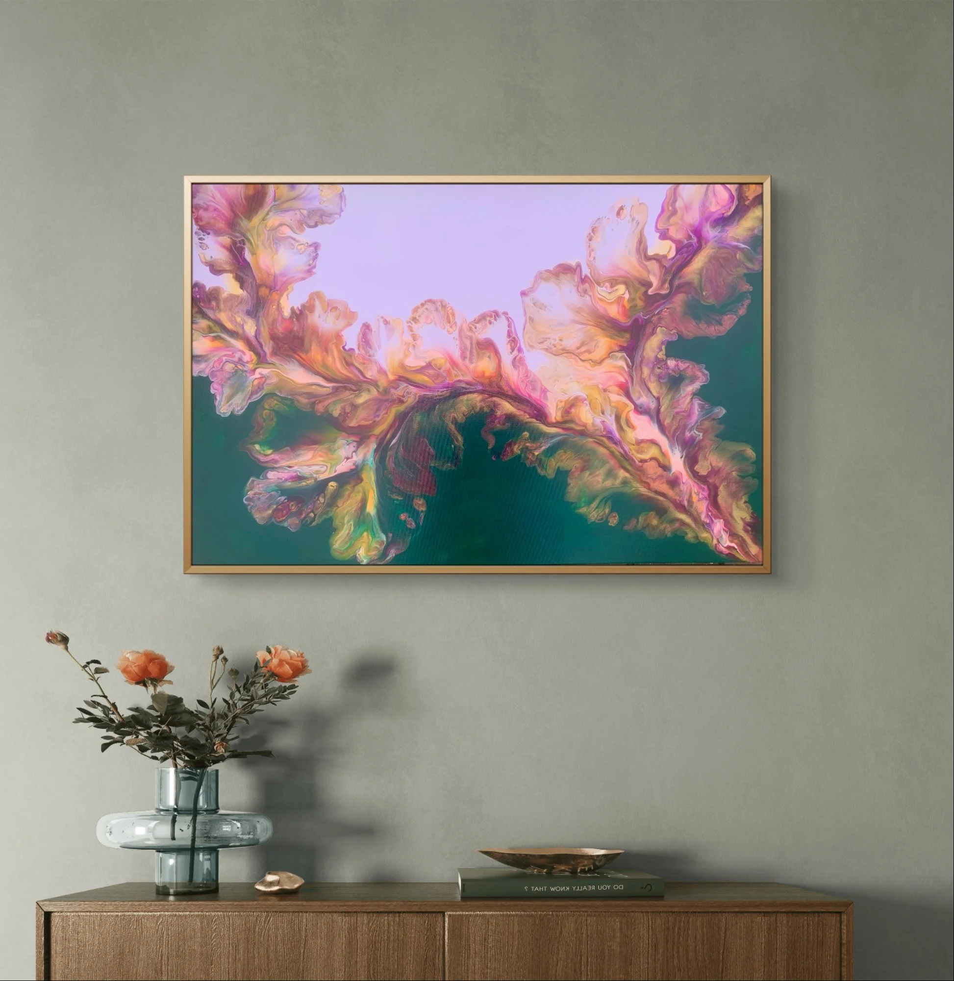Paintings will be delivered unframed. The images of the framed paintings are AI images from Frameit. This allows you to visualize how the painting would look framed in your home.